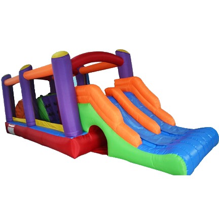 Conçu pour le plaisir et la sécurité, ce module ultra-complet combine 2 glissades, une aire de saut et une zone d’eau rafraîchissante, idéale pour les journées ensoleillées.